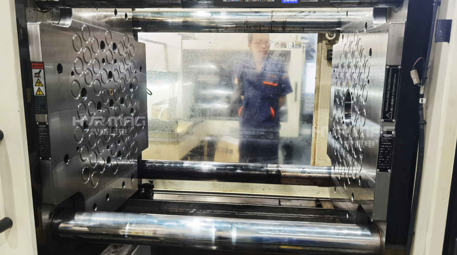 廣東地區某知名注塑制品企業,核心服務家電、汽車零部件領域,擁有多臺200T 注塑機,此前采用傳統碼仔鎖模方式,面臨著嚴峻的生產效率瓶頸。針對該企業的工況與核心需求,悍威磁電為其200T注塑機定制了HQMC電永磁快速換模系統,耐溫 120℃,無需對原有注塑機改造,即可完成安裝調試并投入生產。